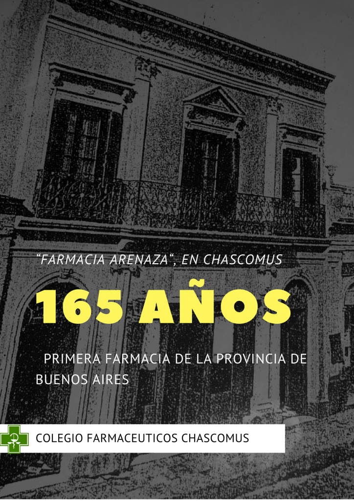 Se trata de FARMACIA ARENAZA, la botica de Don Fernando de Arenaza, un inmigrante vasco que llegó primero a la Ciudad de Buenos Aires, y finalmente a Chascomús, donde estableció el primer antecedente de las 4.500 farmacias que actualmente tiene la provincia de Buenos Aires; ente ellas las 14 farmacias de la Filial de la ciudad de Chascomús, que también incluye a otras 2 de Lezama y 1 de Pila nucleadas por el Colegio de Farmacéuticos de Chascomús.