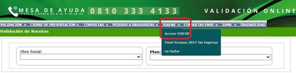 – Deberá ingresar a colfarmaonline.org.ar y seleccionar la pestaña SIAFAR→ Acceso SIAFAR. Como muestra la siguiente imagen:
