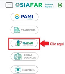 – Se abrirá la siguiente pantalla donde se debe hacer Clic en “SIAFAR ASISTENCIAL”: