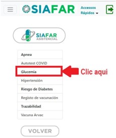 – El sistema mostrará un listado de opciones, donde se debe hacer ”Clic” en Glucemia.