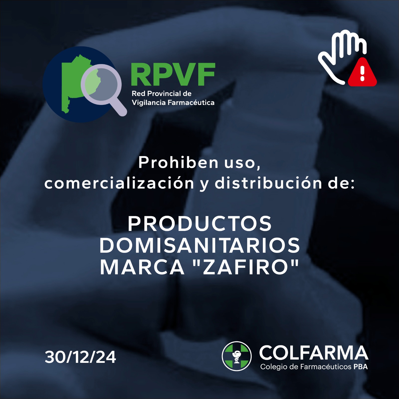 Colegas, transcribimos la siguiente información de ANMAT: Productos domisanitarios marca «Zafiro»