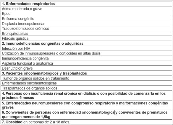 (**) Patologías de riesgo a tener en cuenta: