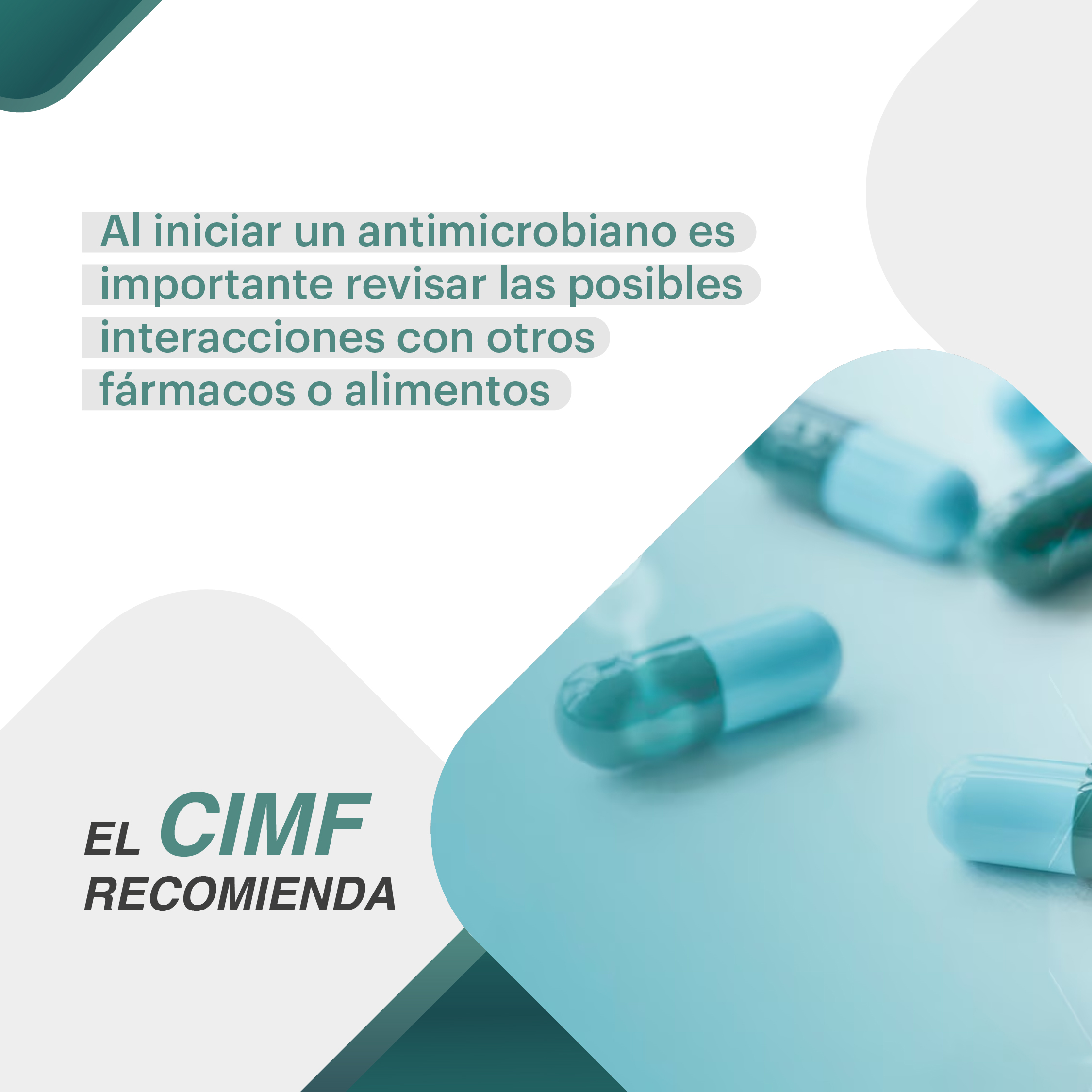 Al iniciar un antimicrobiano es importante revisar las posibles interacciones con otros fármacos o alimentos