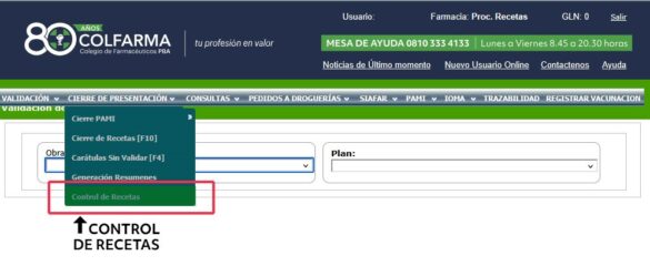 - Programa de Auditoría Interna de recetas Dispensadas: al efectuar un cierre, cada farmacéutico realiza una auditoría visual de las recetas dispensadas. Además utiliza la herramienta del COLFARMAonline para hacer el control de las recetas y detectar inconsistencias.